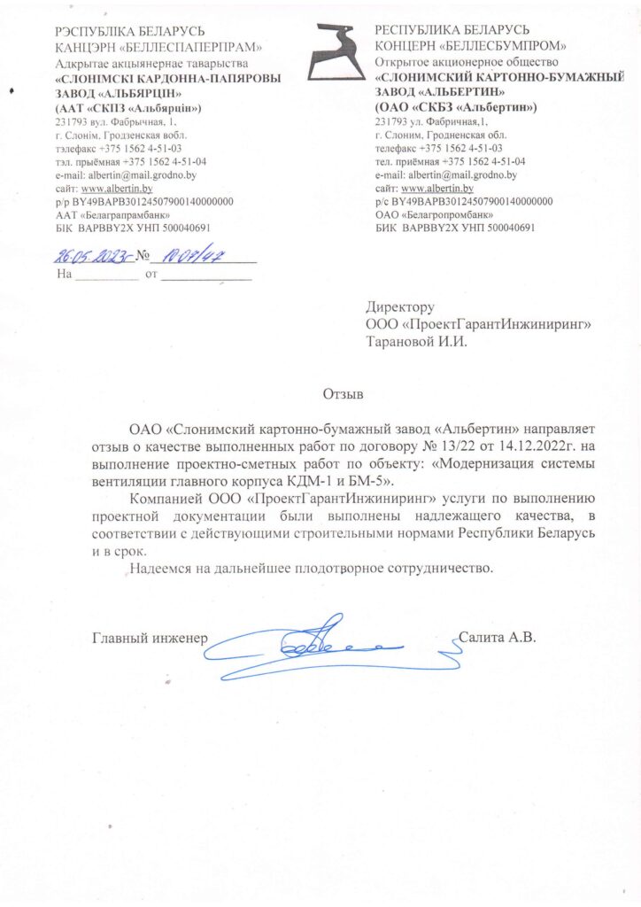 Описание предприятия: ОАО «Слонимский картонно-бумажный завод «Альбертин»