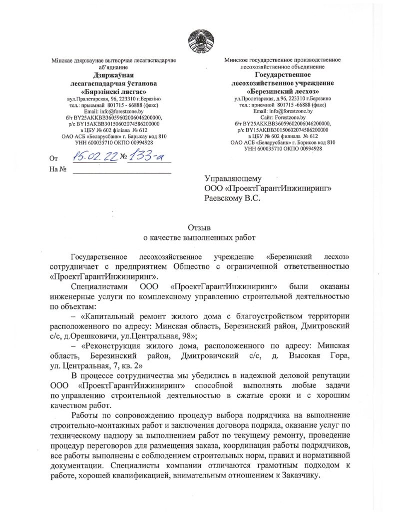 Описание предприятия: Государственное лесохозяйственное учреждение «Березинский лесхоз»