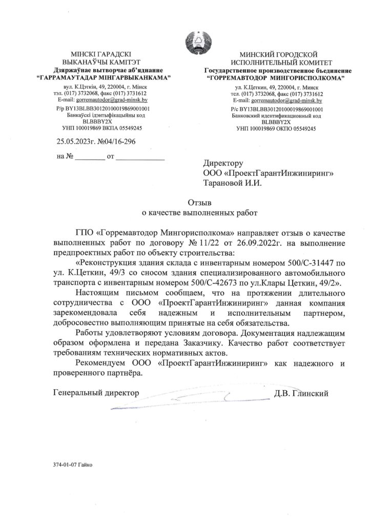 Описание предприятия: ГПО «Горремавтодор Мингорисполкома»